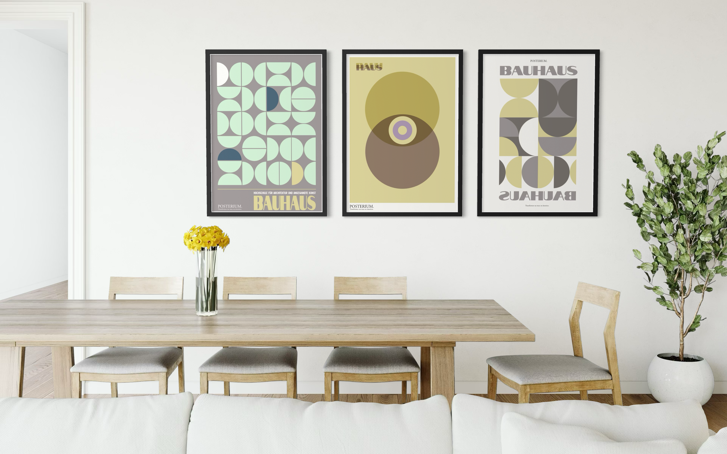 Bauhaus Vol. 1 s’inspire de l’esthétique moderniste et du design géométrique emblématique du mouvement Bauhaus. Cercles, demi-cercles, lignes, contrastes chromatiques et équilibre des formes composent cette collection d’affiches graphiques minimalistes. Une série contemporaine, structurée et intemporelle, pensée pour sublimer les intérieurs modernes.