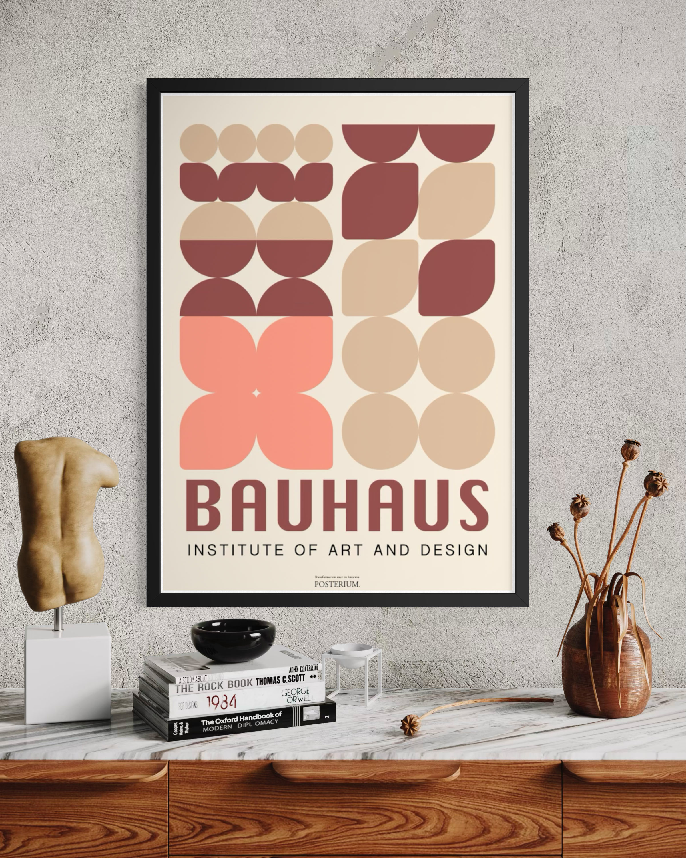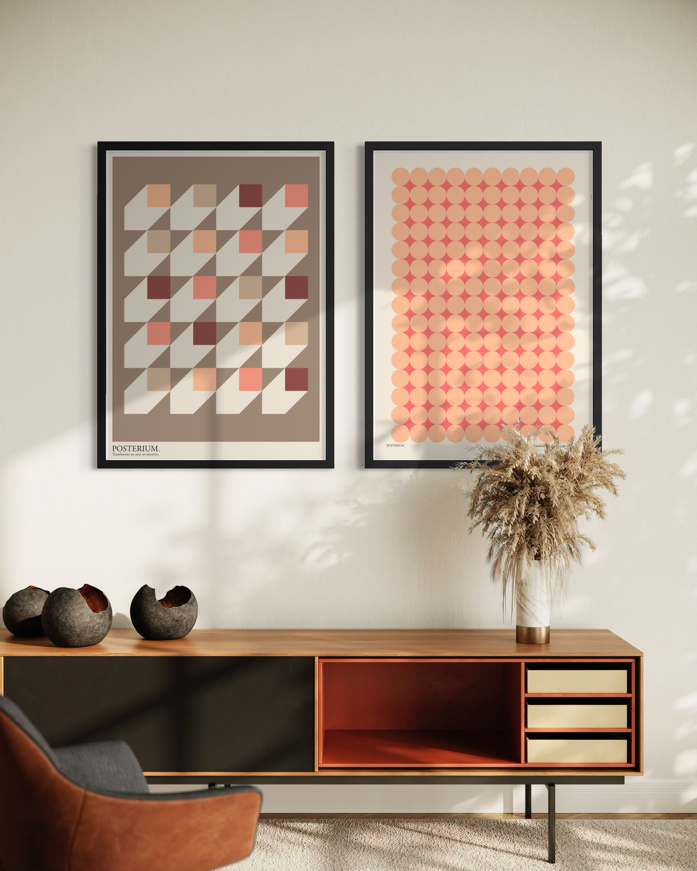 La collection Bauhaus Vol. 2 s’adresse aux amateurs d’affiches Bauhaus rétro, de posters géométriques vintage et de décoration murale design moderniste. Ces affiches sont idéales pour : un salon design contemporain, un intérieur mid-century, un espace créatif, un mur statement au-dessus d’un buffet. Les compositions jouent sur la répétition des formes, la symétrie, les contrastes chauds et les références typographiques, dans une interprétation contemporaine signée Posterium.